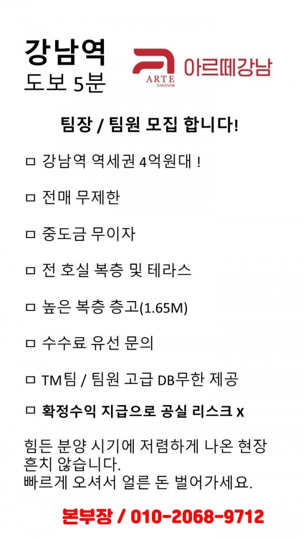 - 본 게시물은 강남 아르떼 에서 제공한 자료로 개인정보를 포함하고 있으며 임의유포, 수집, 배포가 금지됩니다.