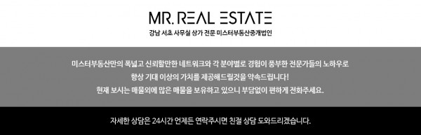 - 본 게시물은 주식회사미스터부동산중개법인 에서 제공한 자료로 개인정보를 포함하고 있으며 임의유포, 수집, 배포가 금지됩니다.