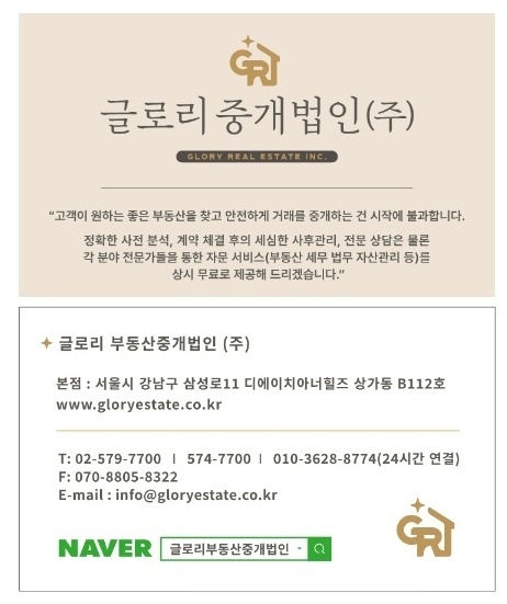 - 본 게시물은 글로리중개법인주식회사 에서 제공한 자료로 개인정보를 포함하고 있으며 임의유포, 수집, 배포가 금지됩니다.